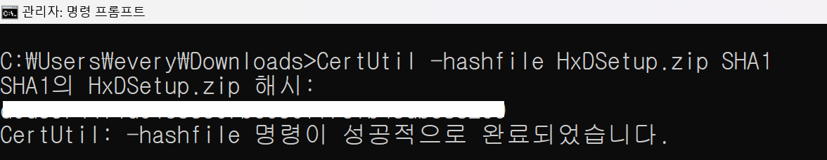 CertUtil -hashfile 파일명 SHA1