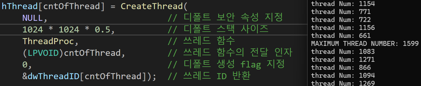 /3GB boot.ini 옵션 없이는 32비트 시스템에서는 2,048개 이상의 쓰레드를 만들 수 없다