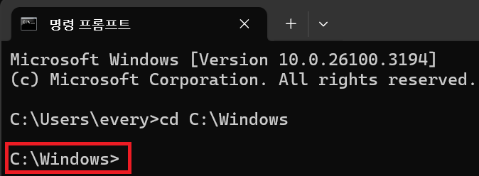 cmd.exe가 변경된 경로를 반영하고 프롬프트(C:\Windows>)를 업데이트