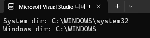 https://learn.microsoft.com/ko-kr/windows/win32/api/sysinfoapi/nf-sysinfoapi-getwindowsdirectoryw