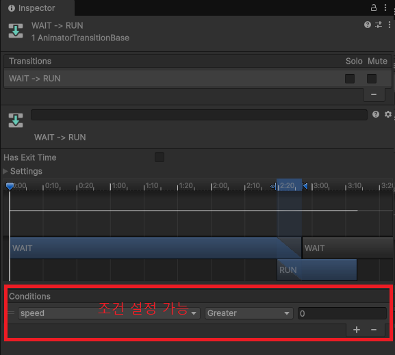 | 역할 | 어떤 조건일 때, 어디로 이동할지 결정 | 애니메이션 끝난 뒤에 이동할지 여부 |