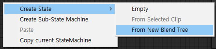애니메이션 컨트롤러에서 우클릭 > Create State > From New Blend Tree