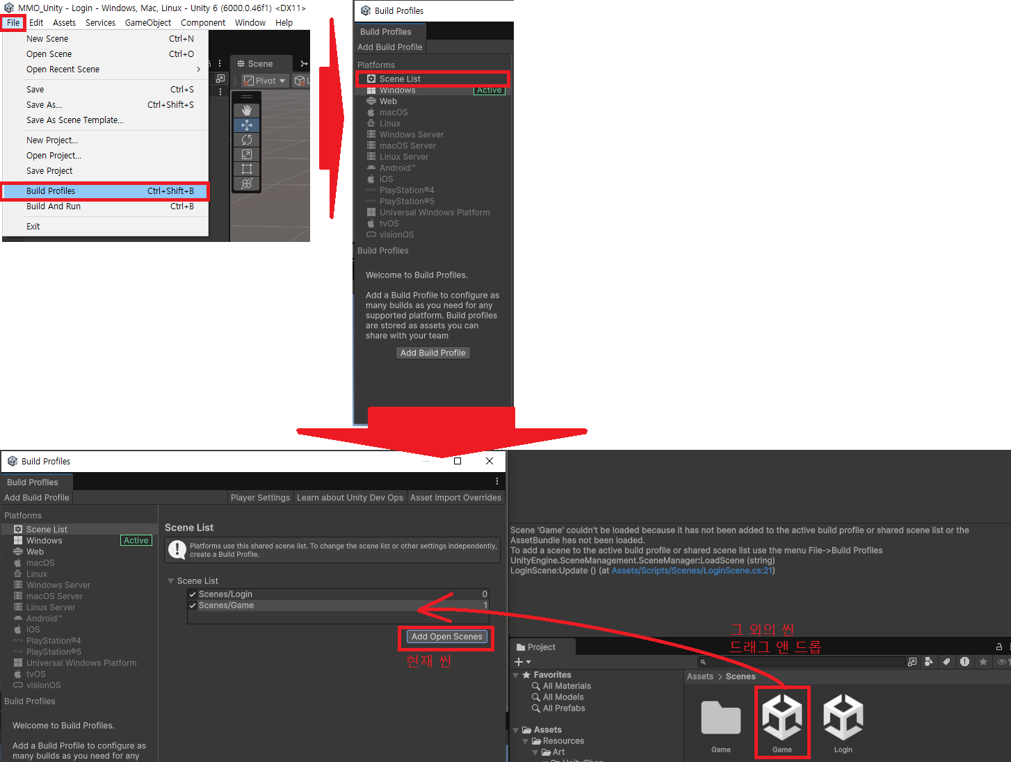 현재 씬: Add Open Scenes 클릭