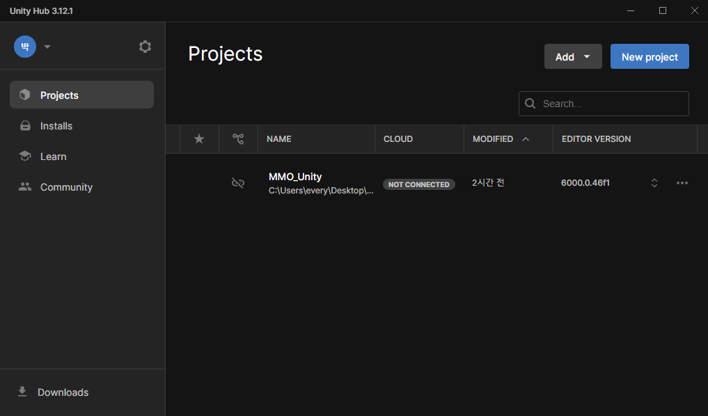* 이전에 다운로드 한 유니티 6000.0.46f1 버전을 라이더와 함께 사용할 예정
