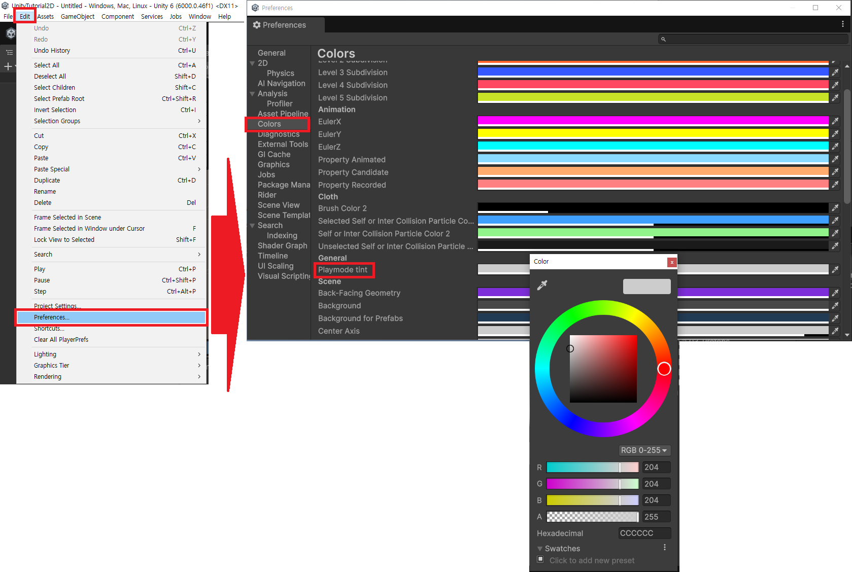 * 유니티 실행(Playmode) 중일 때, UI 색상을 변경할 수 있음