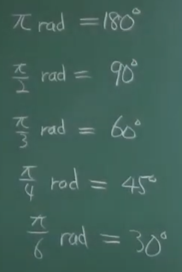 π 라디안 = 180도, 1 라디안 ≈ 57.2958도