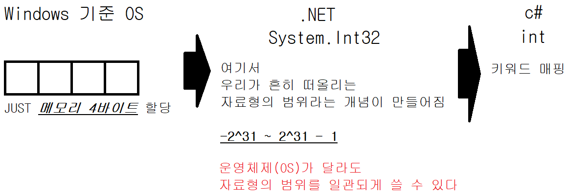 결국 C#에서 쓰는 키워드들은 컴파일러가 .NET의 타입으로 매핑해준다