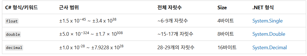 기본 제공 C# 부동 소수점 형식인 float, double 및 decimal에 대해 알아보기