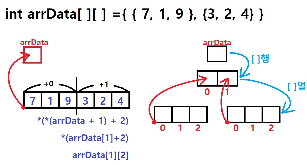 3. *(*(arrData + 행) + 열) : arrData[행][열]