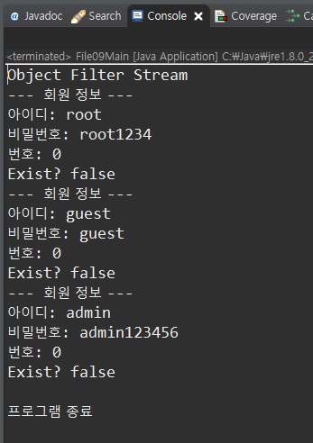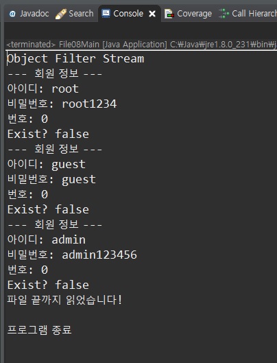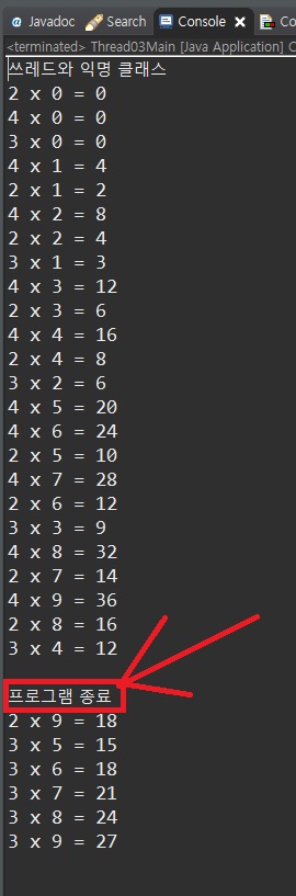 System.out.println("\n프로그램 종료");
