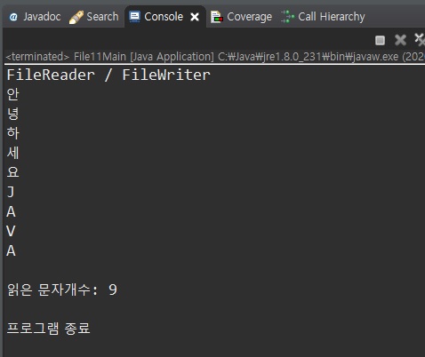 System.out.println("읽고 쓴 문자수: " + charsCopied);
