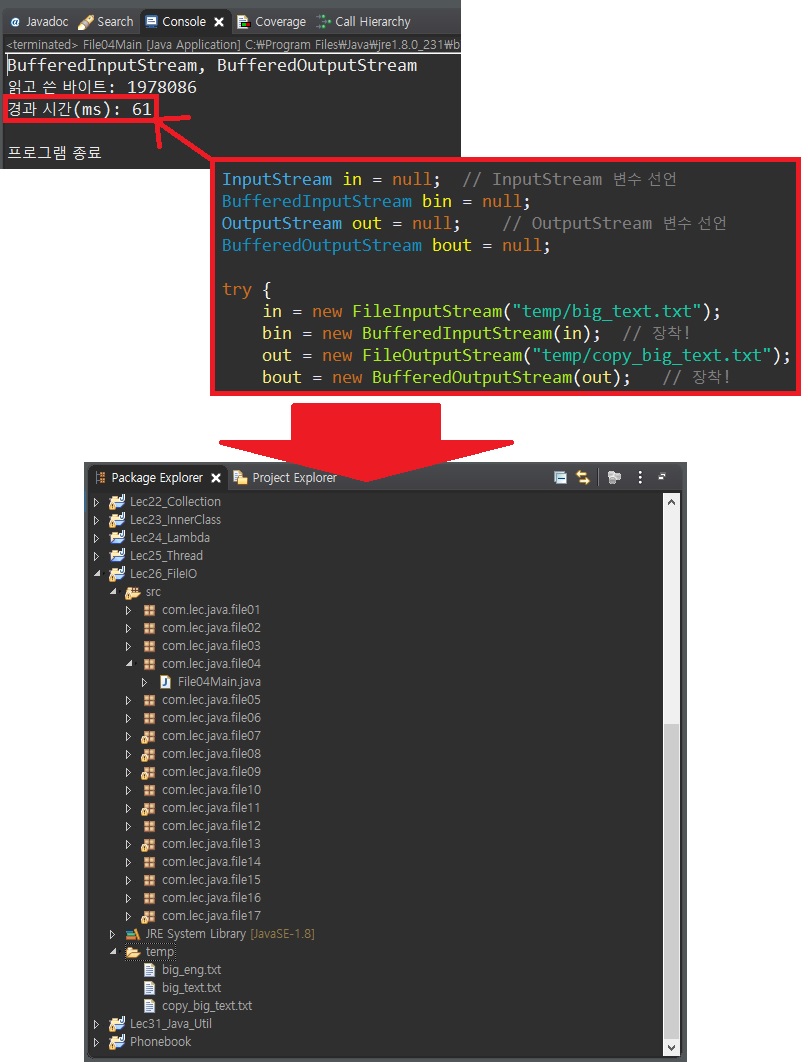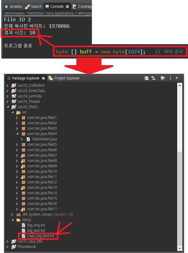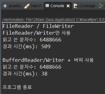 System.out.println("BufferdReader/Writer + 버퍼 사용");