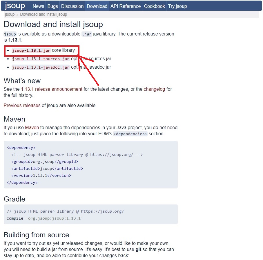 > jsoup-1.13.1.jar core library 다운