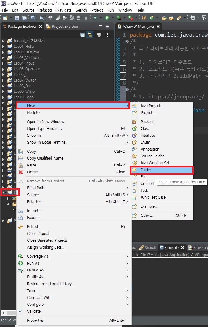 1) com.lec.java.crawl01 패키지, Crawl01Main 클래스