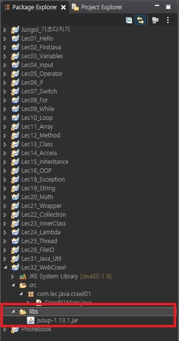 ** 최종적으로 lib 폴더 안에 Java HTML Parser가 잘 다운되었는지 확인하기 **