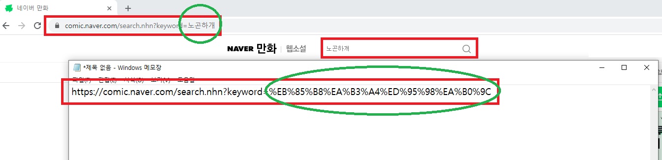 ** 브라우저마다 다른데 크롬 기준으로 파라미터가 한글로 받는 것처럼 보일 수 있으나