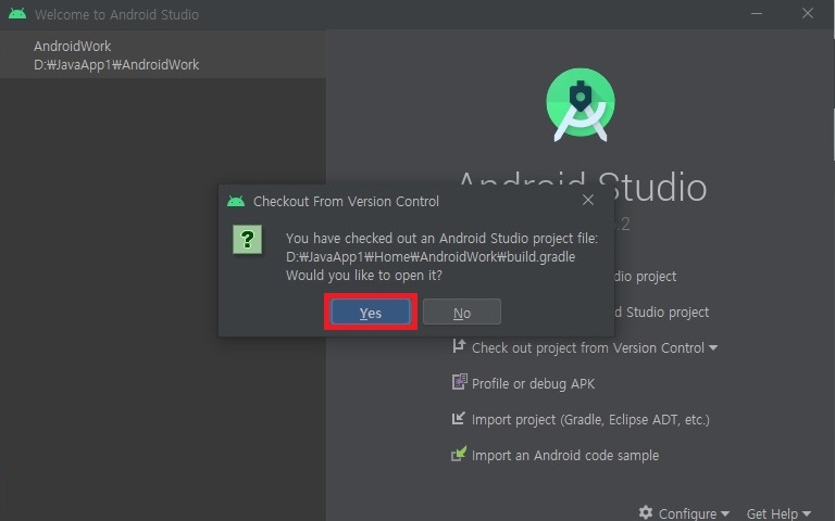 > 아래의 팝업창이 뜨면 Yes 클릭하면 정상적으로 clone 되어 GitHub에 저장된 내용 불러올 수 있음...!!