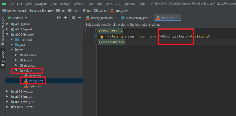 3) res > values > string.xml 클릭 > app_name 에 원하는 이름으로 변경