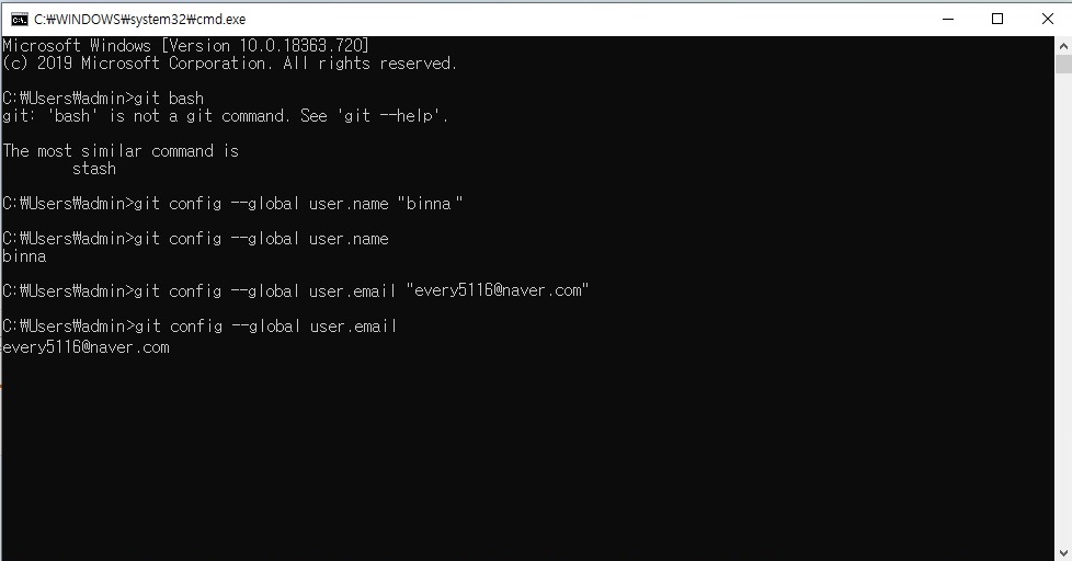 [위의 commit 실패, 왜?] git config을 실행 안해서