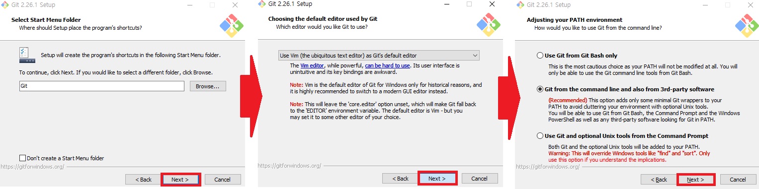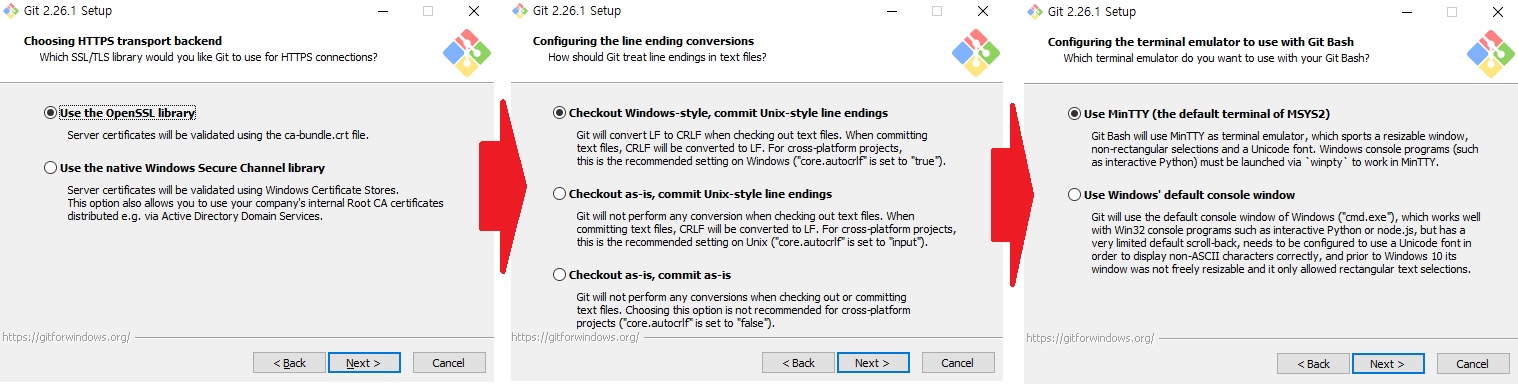 > Enable Git Credential Manager 체크 해제(선택사항, 학원컴에서는 체크 해제하기로 함)