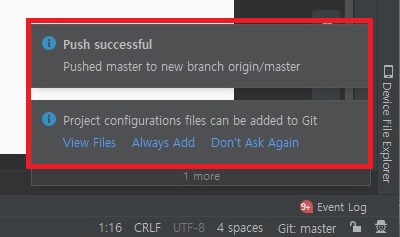 > 아래와 같은 팝업창이 뜨면서 소스가 GitHub에 올라감