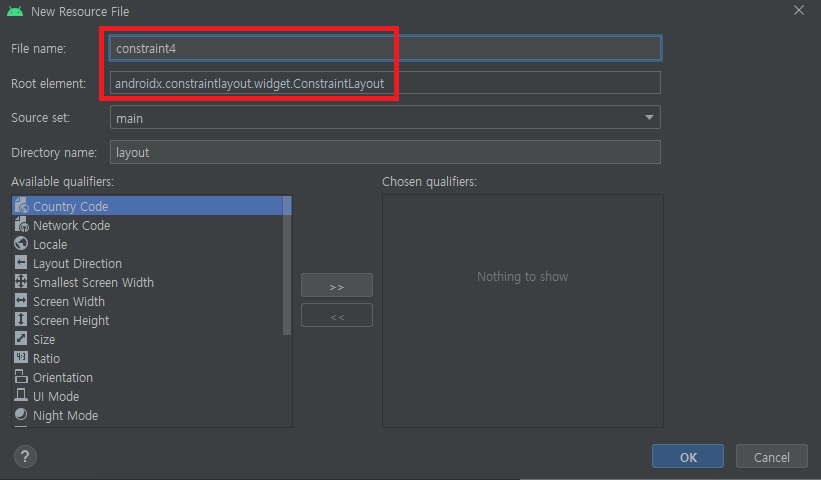 [방법1] 레이아웃 xml 의 속성으로 지정