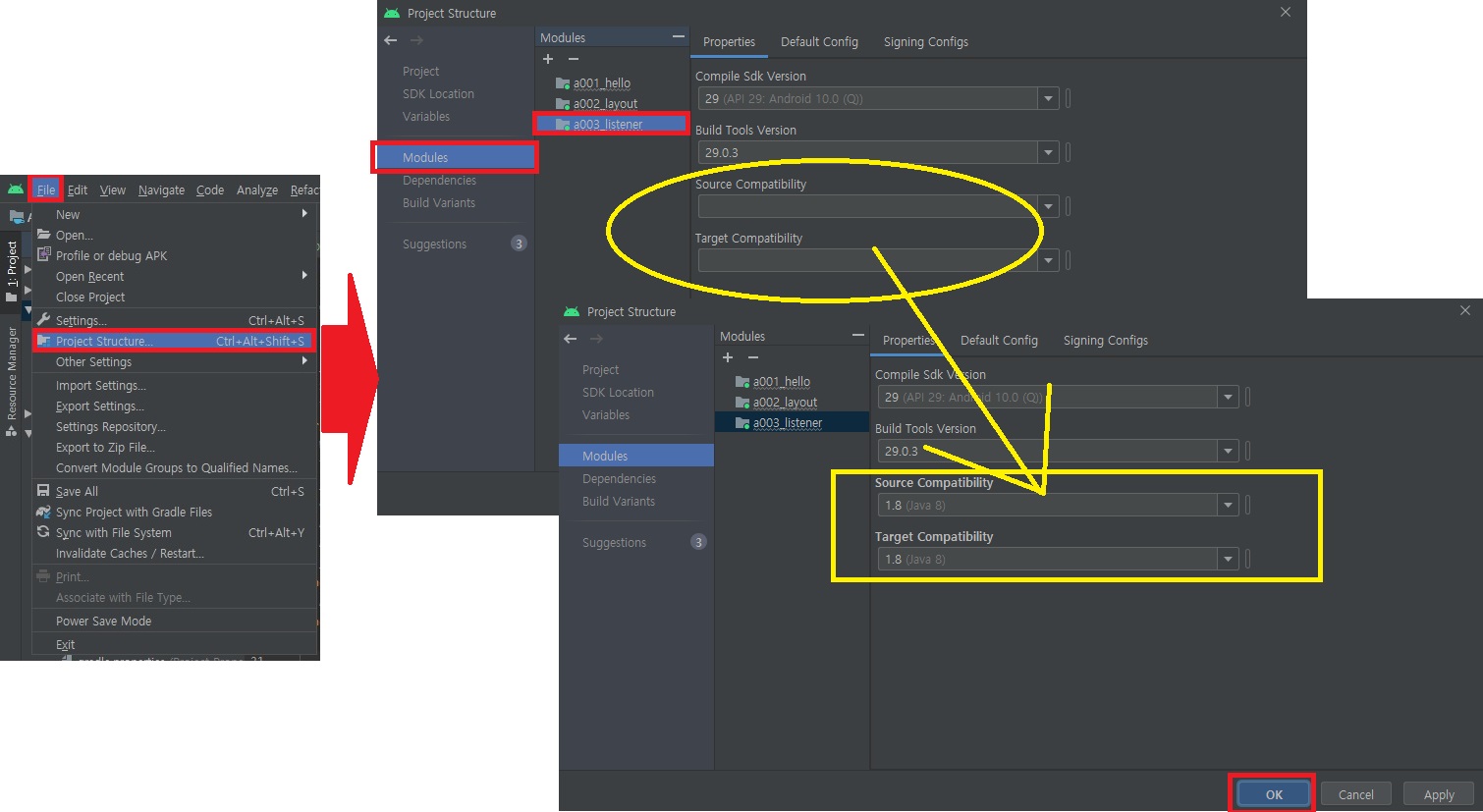 ** 안드로이드 스튜디오에서 자바는 기본 세팅이 1.7버전으로 설정되어 있다