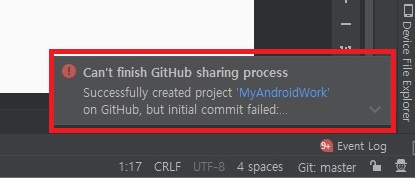 [cmd 창에 위의 명령어를 입력 후 다시 시도 > 정상적으로 commit 및 push됨] Commit and Push 클릭