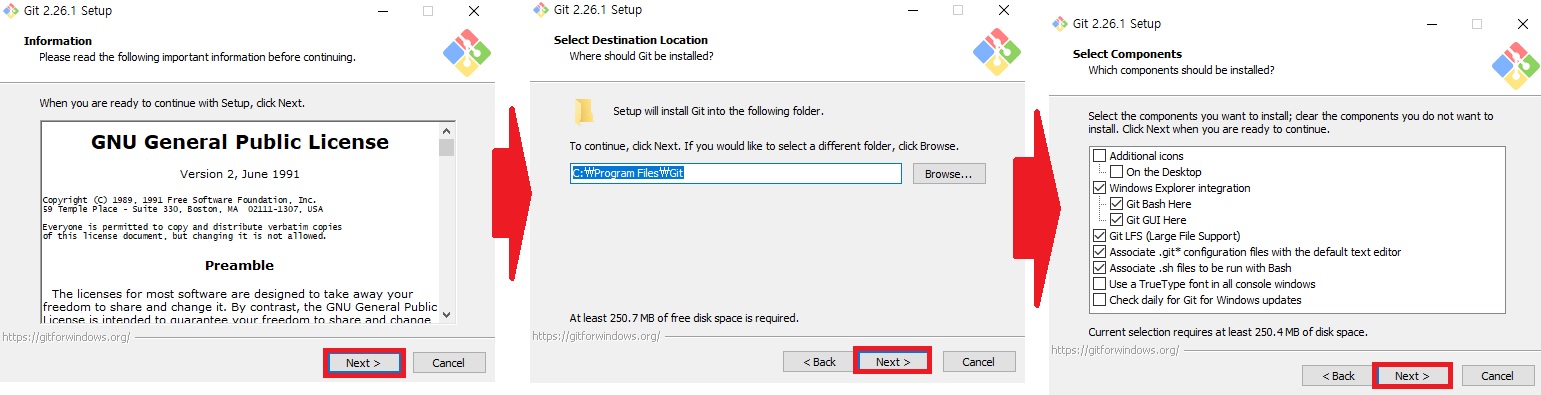 : 아래의 사진과 같이 선택 후 모두 Next 클릭 라이센스 확인 후 Next > 다운받을 폴더 확인 후 Next