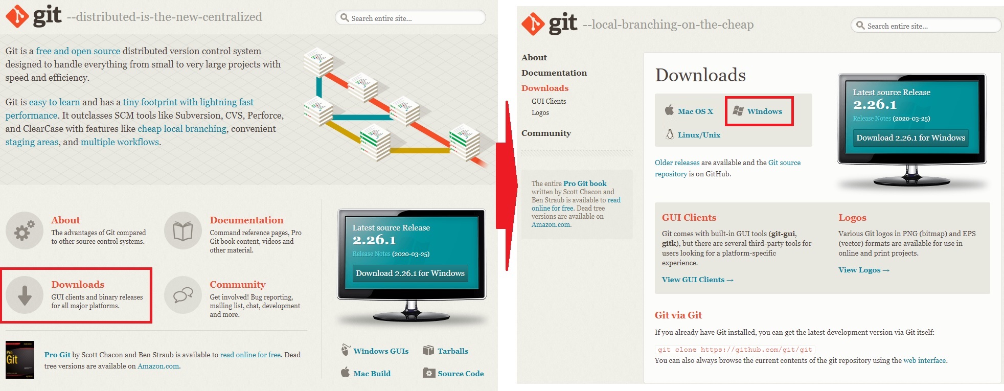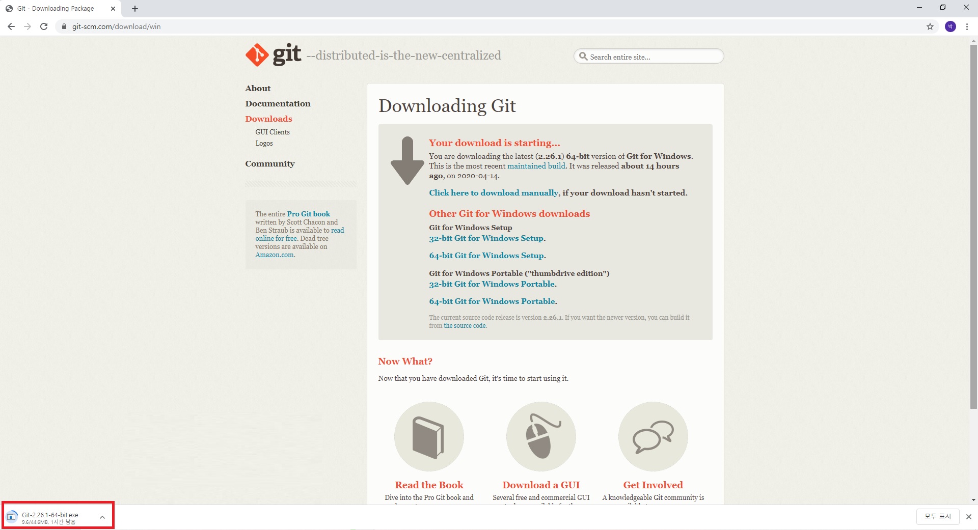 : https://www.git-scm.com > Downloads 클릭 > (자신이 사용하고 있는 운영체제 클릭하면 됨) Windows 클릭