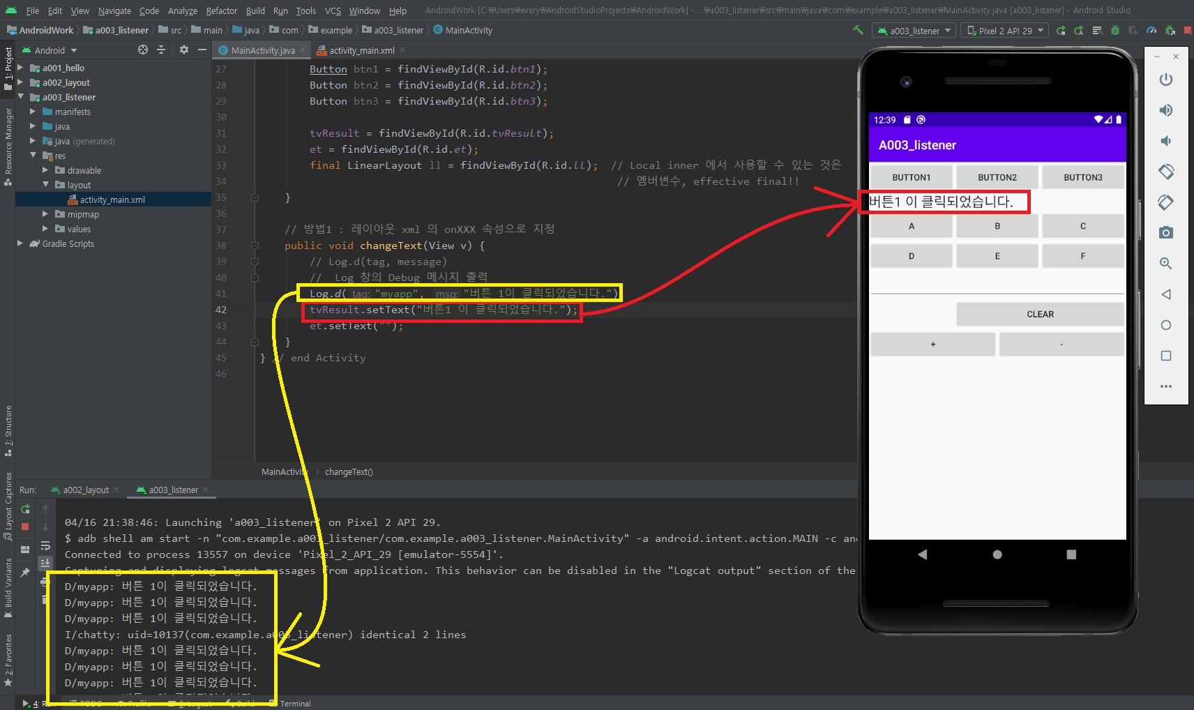 Log.d("myapp", "버튼 1이 클릭되었습니다");