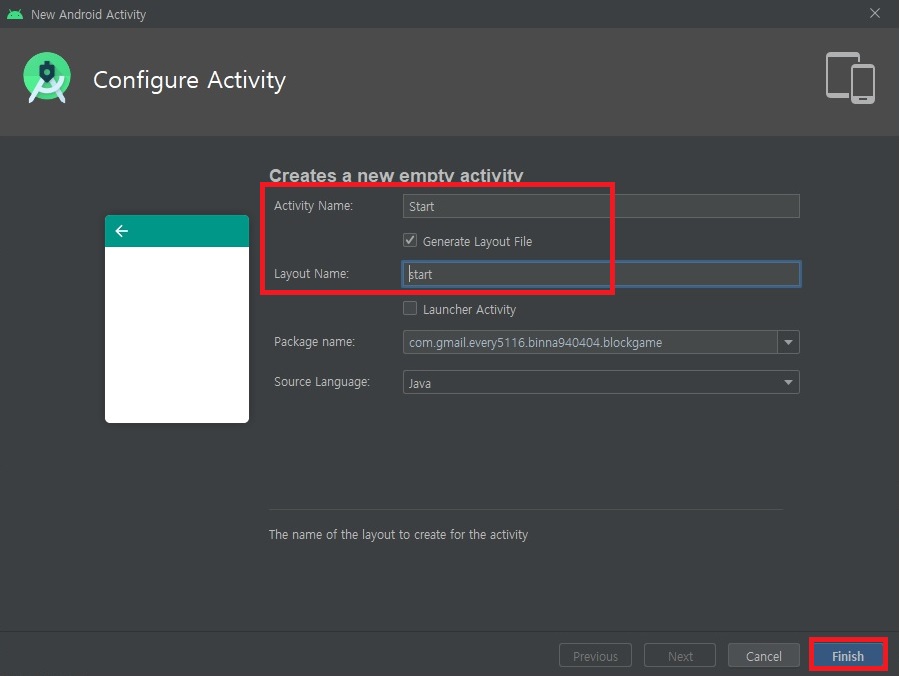 ** start 레이아웃