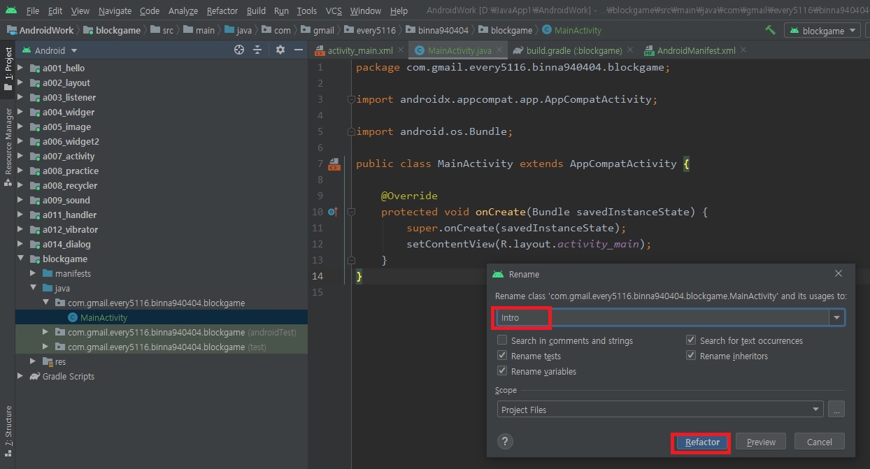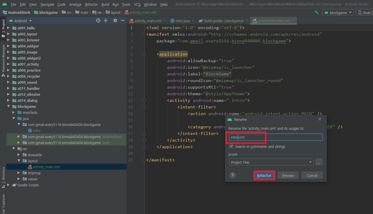 1) Main2Activity 액티비티 activity_main2 레이아웃
